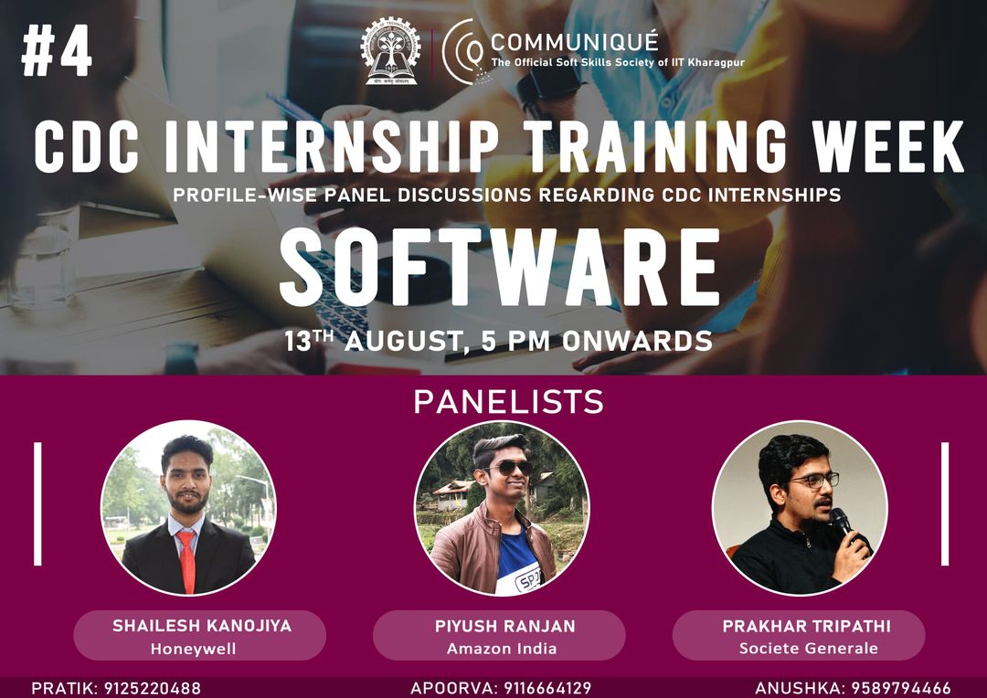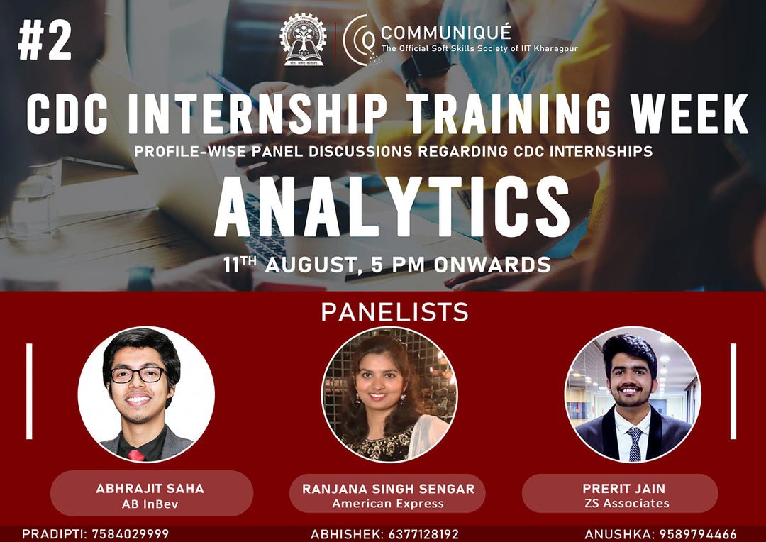 Internships are the first step of an engineer in the corporate world. This step comes with many doubts. To equip our fellow KGPians with the right knowledge from the people who have aced in their respective domain, we organized the CDC Internship Week covering Analytics, Software, Core, Finance and FMCG profiles.