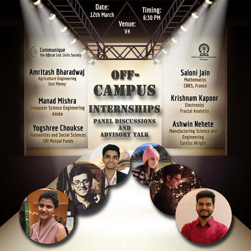 Want to explore the off-campus Internship? Communiqué had a panel discussion with experienced panels to guide you through the procedure and tell you the dos and don'ts for these internships. The panels also provided some essential tips to grab an internship and also provided some valuable websites and study materials for last-minute preparation.