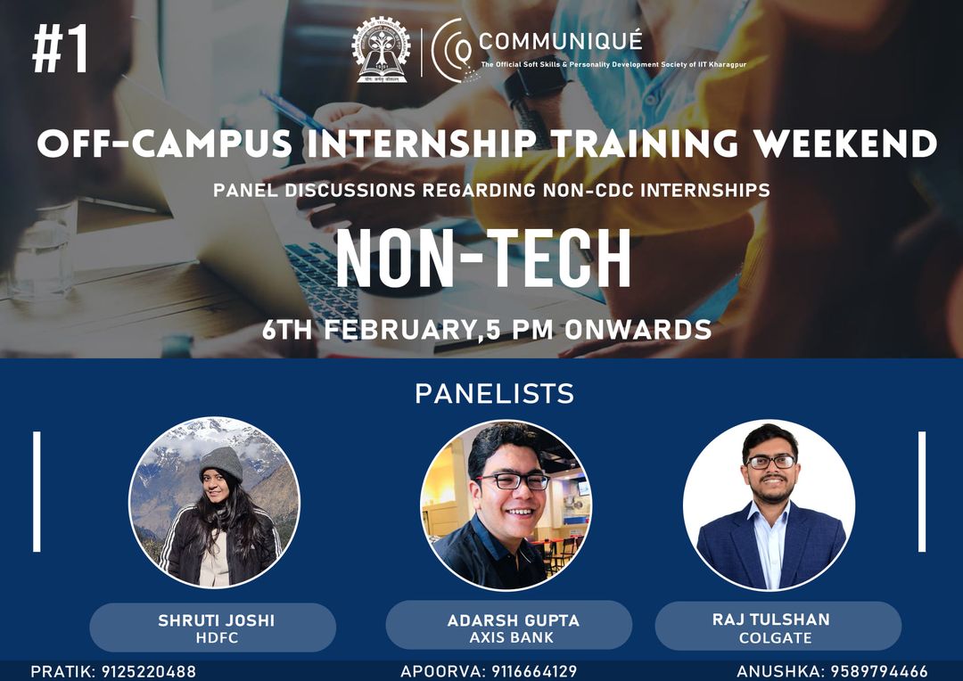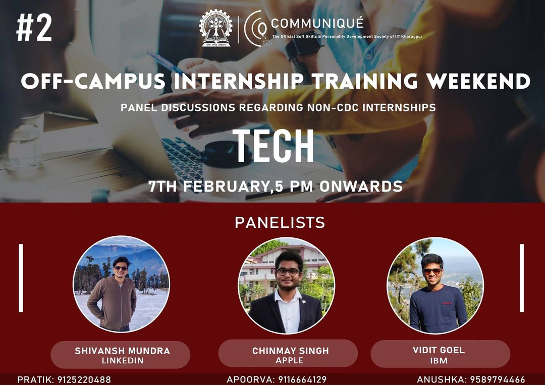 Want to explore the off-campus Internship? Communiqué had a panel discussion with experienced panels to guide you through the procedure and tell you the dos and don'ts for these internships. The meeting provided some essential tips to grab an internship and also provided some useful websites and study materials for last-minute preparation.