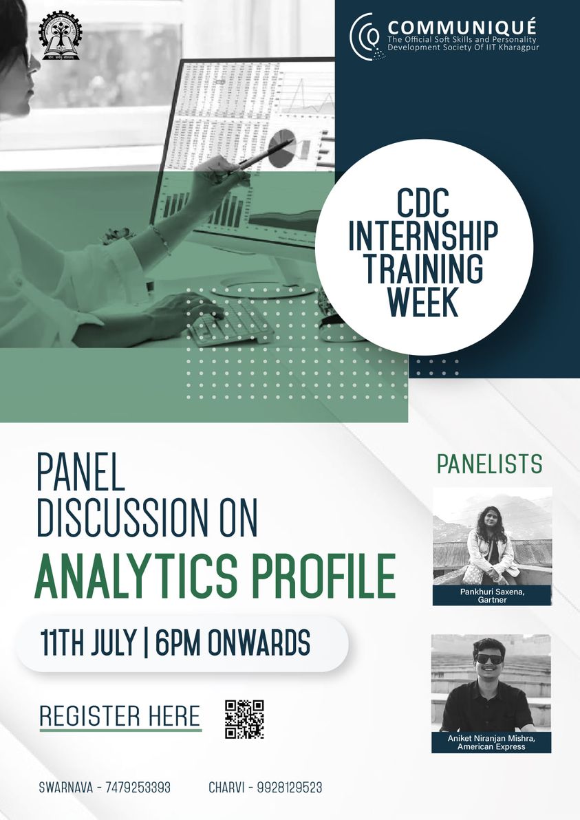 Internships are the first step of an engineer in the corporate world. This step comes with many doubts. To equip our fellow KGPians with the proper knowledge from the people who have aced in their respective domain, we organized the CDC Internship Week covering Analytics, Software, Core, Finance and FMCG profiles.