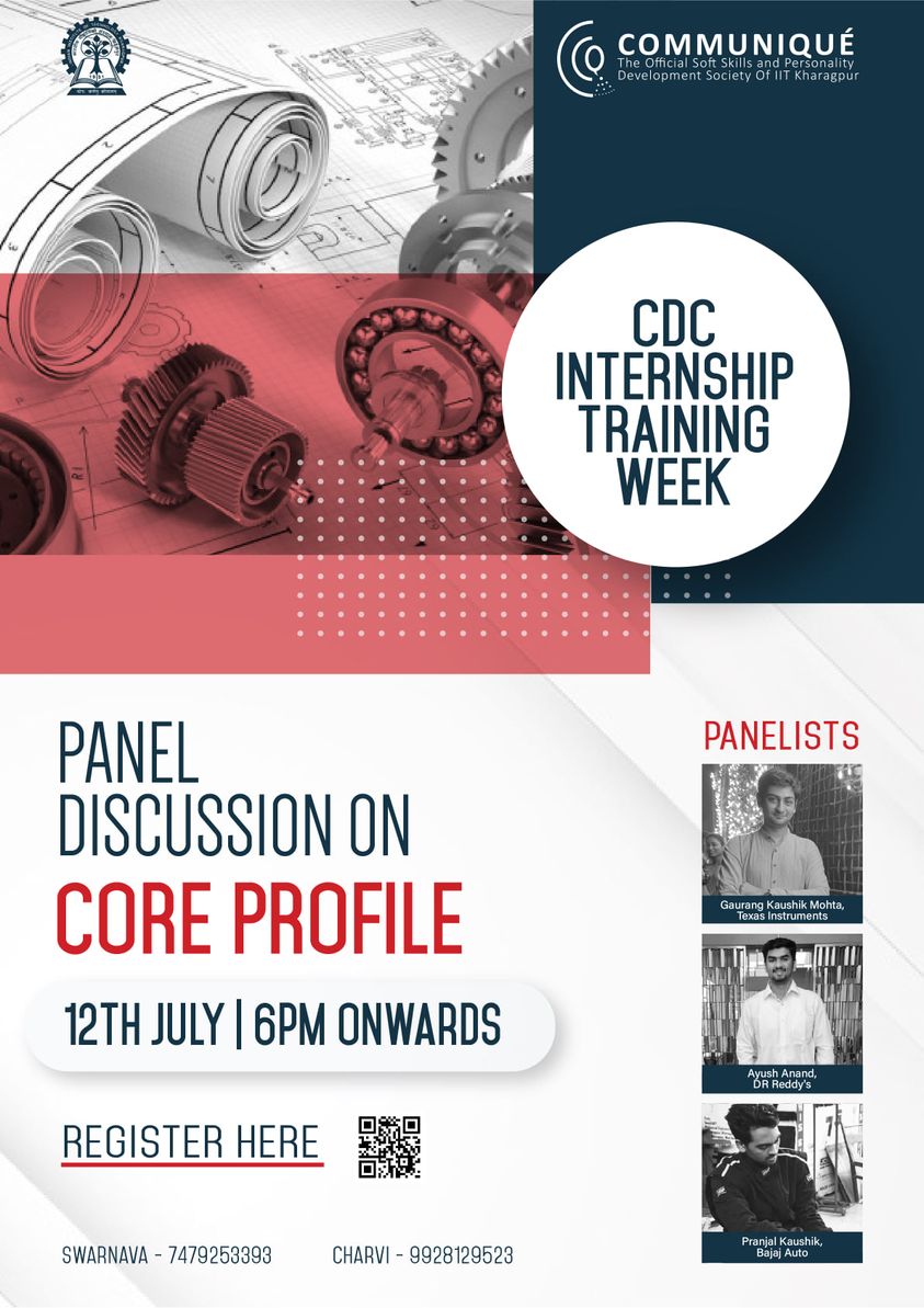 Wondering what to do and how to do your CDC intern preparations for the upcoming CDC Internships? Don't worry, we got you covered. The Students' Welfare Committee, Technology Students' Gymkhana, IIT Kharagpur, in association with Communiqué brings you a series of panel discussions on CDC Internship preparations with the pre-final year students who have cracked their CDC internships.