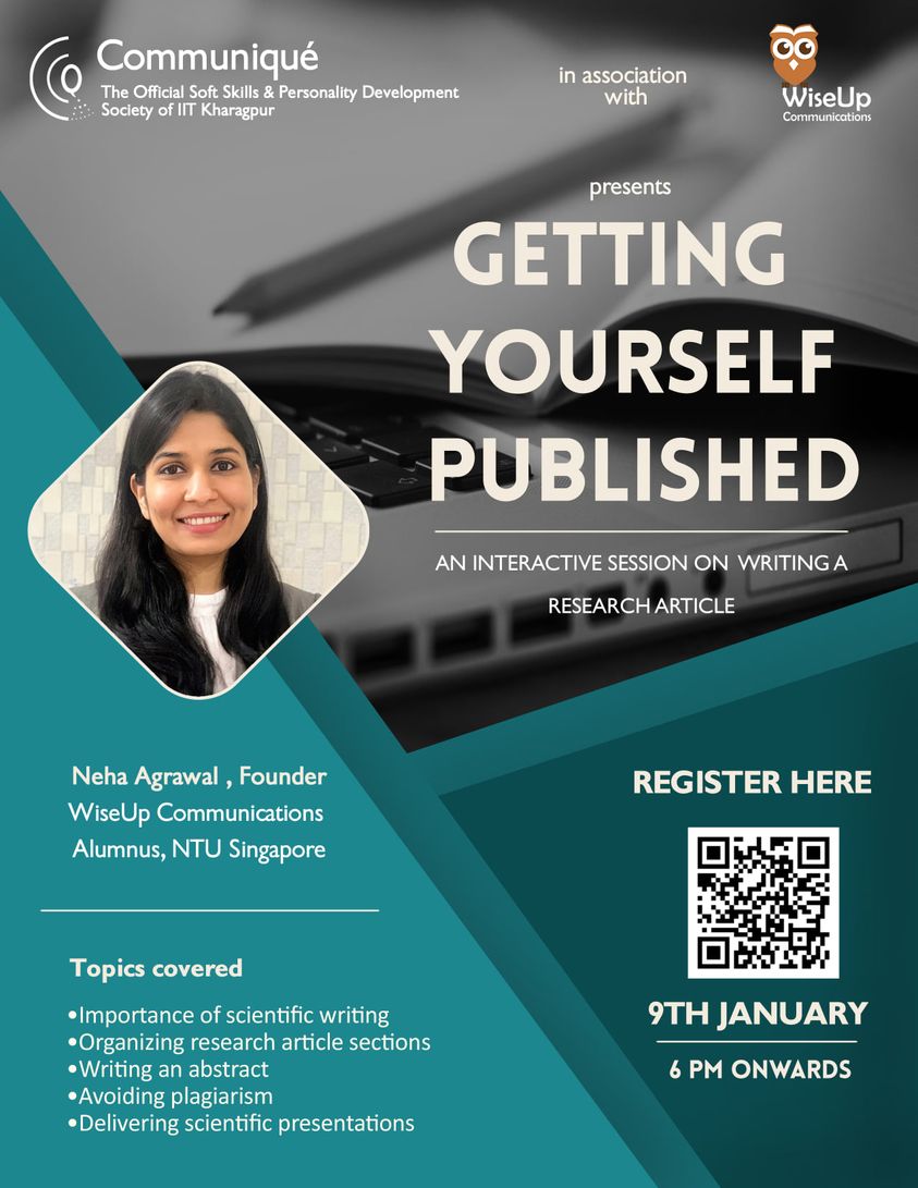 Communiqué, in association with WiseUp Communications, organized an enlightening session on How to effectively write a Research Article with Founder Neha Agrawal, an alumnus of NTU Singapore. The session covered the importance of scientific writing, organizing research article sections, writing an abstract and avoiding plagiarism.
