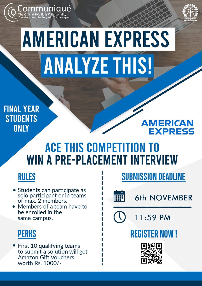 Communiqué, in association with American Express, organized the Campus Challenge 2021 for the final year students. The first ten qualifying teams to submit a solution got Amazon Gift Vouchers worth Rs 1000 and a chance to sit in a Pre-Placement interview during Campus Placements.